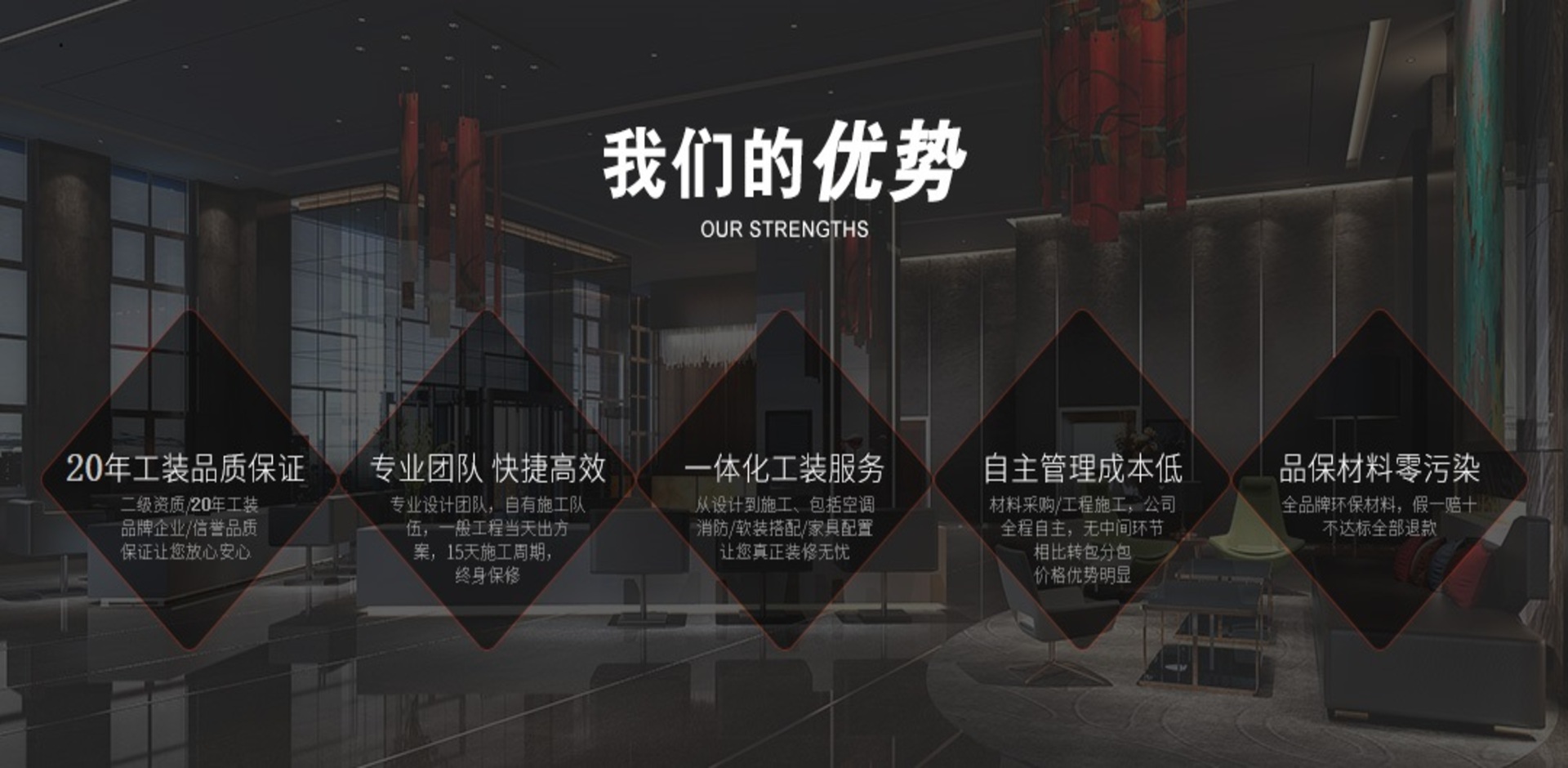 客戶稱心,我們安心”是我們公司的宗旨,也是公司全體員工的行為規(guī)范, 更是公司贏得客戶的鄭重承諾,“將心比心,誠(chéng)信誠(chéng)意”是公司與客戶溝通、 理解和信任的保證,尊重和維護(hù)客戶的利益是我們辦企業(yè)的標(biāo)準(zhǔn), 真心做到讓客戶省心、放心、稱心是我們公司的宗旨,“贏在品質(zhì)、立于誠(chéng)信”朗藝始終以高品質(zhì)工程質(zhì)量贏取客戶信任,以誠(chéng)實(shí)守信的做事風(fēng)格樹立公司品牌信譽(yù)與口碑。